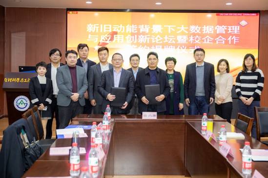 刘培德代表山东财经大学、毕巍代表联想业务集团签署战略合作协议。根据协议,双方将以国家大数据相关产业发展需求为导向,以山东财经大学大数据相关专业学科为基础,秉持“产教融合、合作分享,优势互补、战略共赢”的原则,建立产学协同创新生态机制和人才培养模式。双方共同为山东财经大学-联想企业业务集团“大数据工程实验中心”进行揭牌,并合影留念。“大数据工程实验中心”依托山东省智慧养老与大数据实验室,将承担双方大数据人才培养、实验教学、科学研究、校企合作等多项共建职能。