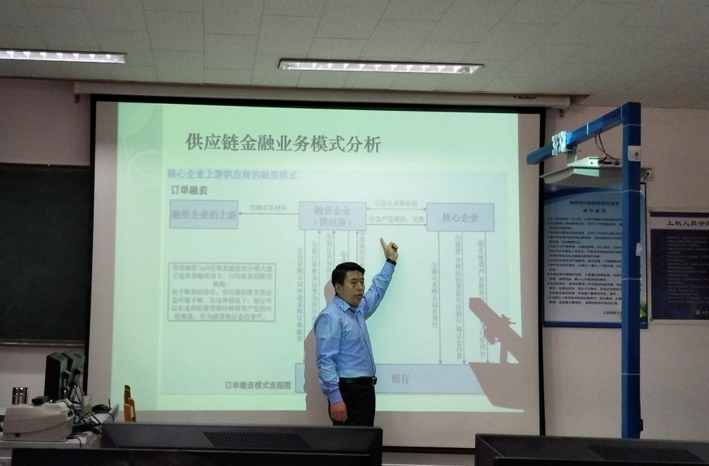 4月2日下午,管理科学与工程学院研究生校外导师、山东省物流与交通运输协会侯鹏秘书长应邀为学院师生做了《供应链金融业务模式》专题讲座,2017级物流工程专业研究生、物流管理系部分教师参加讲座。