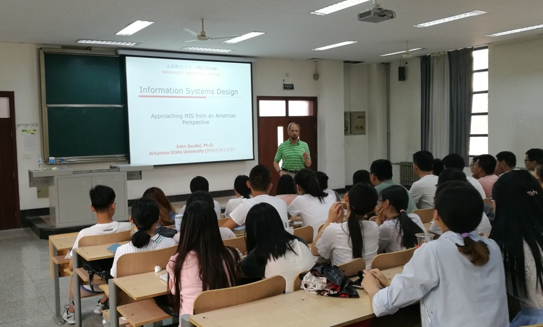 John教授热爱中国文化,热心于我校与美国阿肯色州立大学的学术交流,我校多名教师经他邀请曾赴美学习。他在授课之余也积极参与信息管理与信息系统专业的学术研讨,对信息管理与信息系统山东省高水平应用型专业群项目提出了建设性意见。