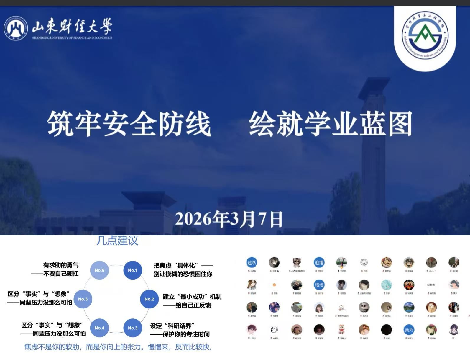 围绕学风建设,辅导员结合本学期教学安排与培养要求,鼓励学生明确学习目标,端正学习态度,合理规划学业与生活,营造勤学、善思、笃行的优良学习氛围。同时,辅导员就本学期奖助评定、校园活动、就业升学、心理健康等重点工作进行细致解读与安排,耐心解答学生疑问,传递学院对学生成长成才的关心与支持。