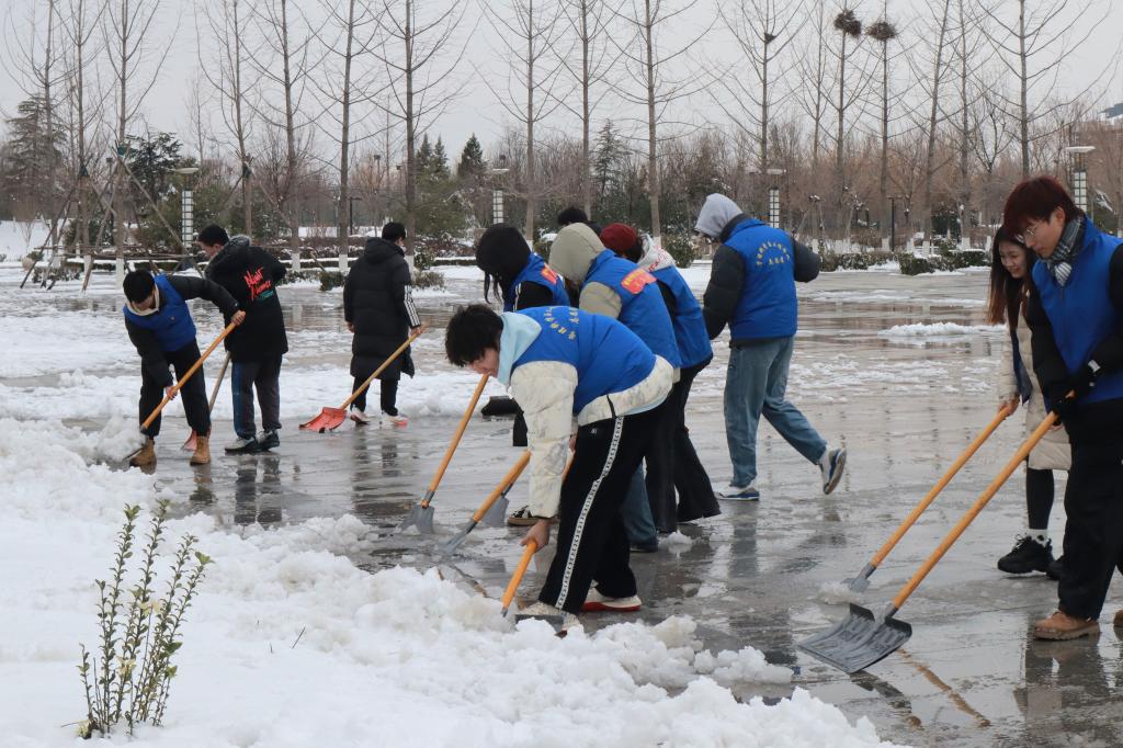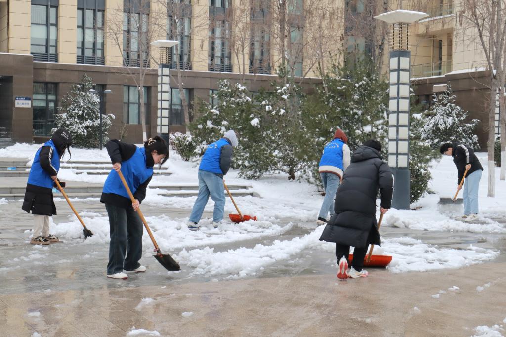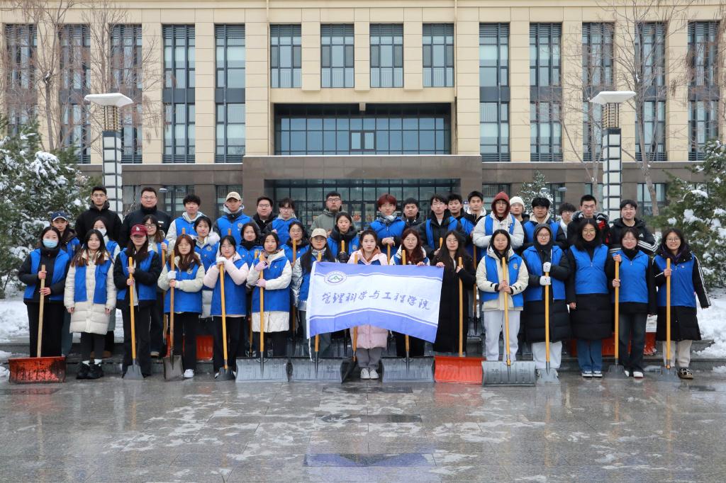 3月3日下午,我院积极响应学校号召,组织学生干部和入党积极分子开展志愿铲雪活动。在老师的带领下,数十名学生骨干不畏严寒,齐心协力清理校园内积雪,为师生出行开辟安全通道。