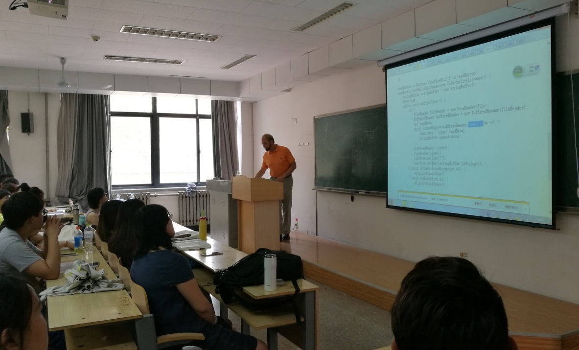 《管理信息系统》课程国际化项目的国外合作高校为美国阿肯色州立大学,项目聘请了该校商学院John Seydel教授为讲座教授,我院由王小斌、阚功俭等老师任合作教师。John Seydel教授系统为我院研究生和本科生讲授《管理信息系统》课程的相关内容,在燕山校区每周二上午为管理科学与工程专业博士生讲授《信息系统中的大数据处理》,下午为管理科学与工程专业硕士生讲授《基于设计视角的信息系统》。期间,John Seydel教授还为物流管理专业三年级同学讲授了《运作管理》课程,为信息管理与信息系统专业三年级的同学讲授了《Android开发》课程。与此同时,John教授赴明水校区为信息管理与信息系统专业二年级学生做了《信息系统设计——以一个美国人的视角》的学术讲座。