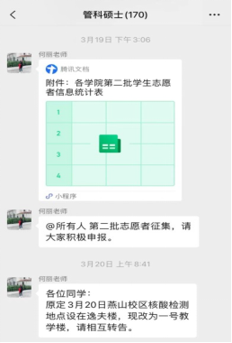 随着疫情发展,数名研究生党员、学生干部面对特殊时期,体现特殊担当,积极投身到学校联防联控工作一线,引导核酸检测秩序,帮助校园医务人员完成核酸检测取样及信息录入工作,为校园疫情防控贡献自身力量。