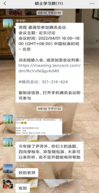 关洪军教授利用网络线上平台给予学生许多论文方面的帮助,他对研一学生提出要求:一周至少两次组会讨论,总结所学所获,并形成会议纪要。学生们通过探讨论文思路和方法并逐步尝试运用,不断提高论文写作能力,为接下来的论文开题奠定了一定的基础。