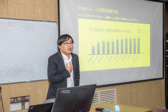 签约揭牌仪式后,联想企业业务集团解决方案中心架构师王涛、第四范式(北京)科技有限公司数据架构师王星,在燕山校区逸夫楼六楼多功能报告厅作了题为《联想大数据展望》、《金融大数据应用实践》的学术报告,并和我院2018级卓业创新班同学进行了互动交流,师生代表30余人聆听了报告。