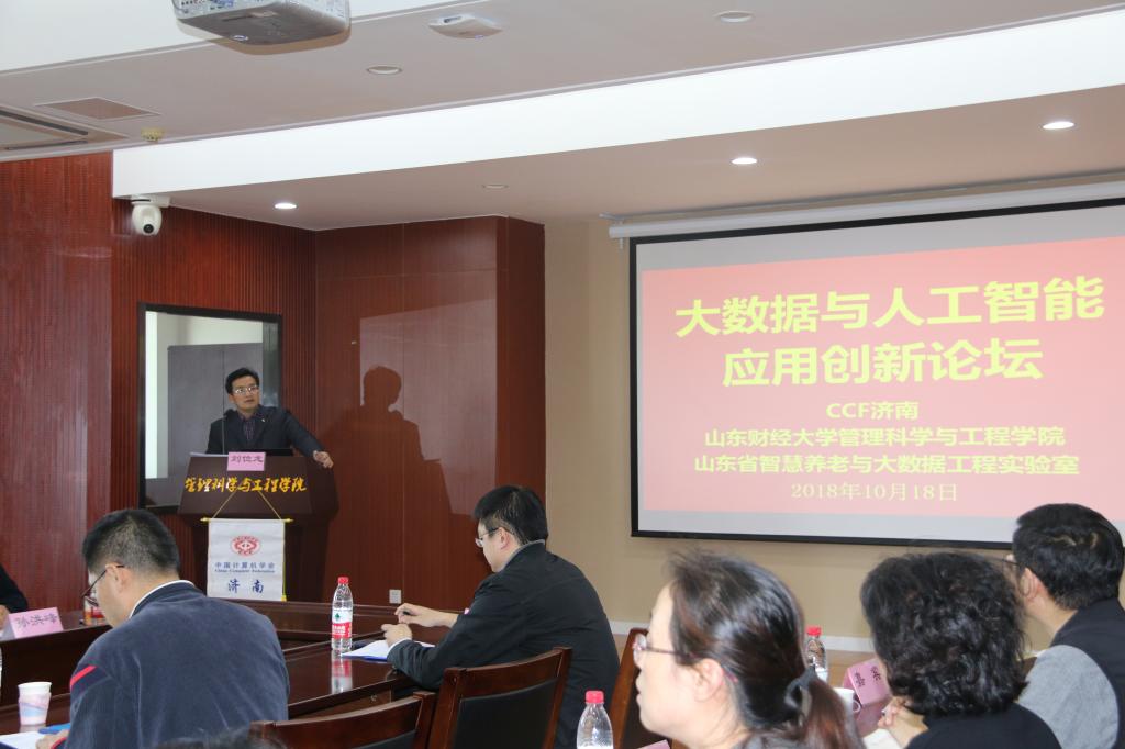 10月18日,由管理科学与工程学院、CCF济南共同主办,山东省智慧养老与大数据工程实验室承办的“大数据与人工智能应用创新论坛”在燕山校区举办。论坛邀请了山东大学软件学院刘士军教授、国家超级计算机中心舒明雷研究员、齐鲁医院心内科张鹏飞副教授、齐鲁医院内分泌科侯新国副教授、山东女子学院数据科学与计算机学院副院长孙洪峰教授做专题报告。来自省内外多所高校、医院等企事业单位的近50余名代表参加了此次论坛,管科学院杨成伟博士主持了本次论坛。
