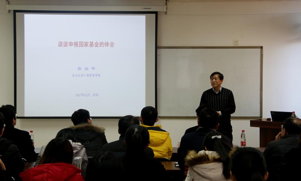 樊治平教授为管理科学与工程学院教师和研究生作了题为《谈谈申报国家基金的体会》的学术报告。他介绍了申请国家基金的重要性,结合自己19年来申请国家基金的实际经验,谈了自己的几点体会,并以国家自然科学基金申报为例,讲述了国家基金项目评审过程及要求、基金评审出现的新情况、申报国家基金的前期工作、申报国家基金的若干建议、国家基金选题、怎样撰写基金申请书等6个方面问题。报告结束后,樊治平教授与参会师生进行了互动交流,对如何高成功率地申报国家基金进行具体指导。