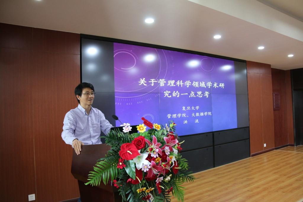 洪流教授首先介绍了自己多交叉学科的学术背景。接着,他从“学术”和“研究”的起源与意义、学术研究的基本方法、学术研究的评价、东西方思维方式的差异、为什么要做学术研究、作学问的三种境界等几个方面畅谈了自己在管理科学领域学术研究的思考,并与大家分享了自己在研究中豁然开朗的瞬间和发表综合性工作论文的曲折经历。