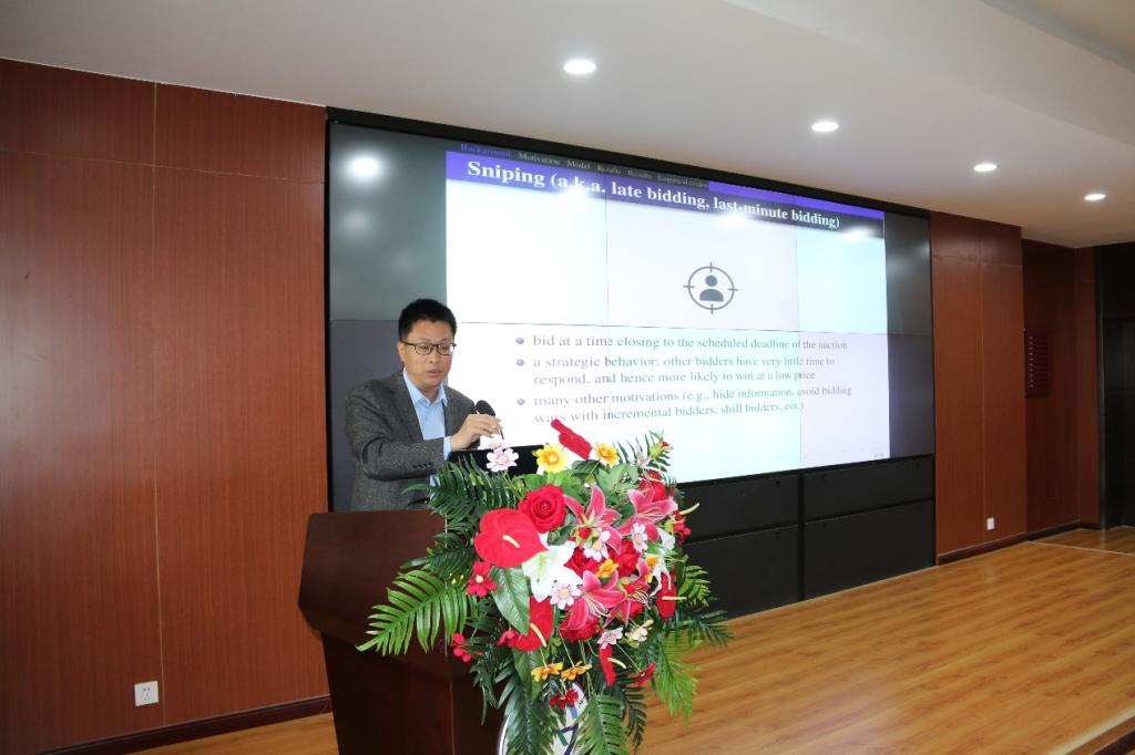 曹志刚教授为大家分享的是关于“软关闭机制能否消除拍卖中常见的狙击行为”的研究成果,首先向大家介绍了拍卖的概念以及常见的拍卖物品、知名拍卖行以及线上拍卖平台,接着引入“软关闭(soft-close)”和“狙击(sniping)”的概念。曹志刚教授指出在已有文献研究中广泛认为软关闭能完全消除狙击行为,但是这类研究存在的问题是采用了“机器代理加价”这一完全理性的行为,忽略了人工加价的情况。因此曹志刚教授通过引入有限注意力模型,使用阿里巴巴司法拍卖的数据,研究在人工加价情况下软关闭机制的作用,得出了软关闭机制不能完全消除狙击行为的结论。