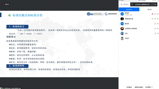 会上,孟凡斌研究员从标准化基础知识、新时代中国标准化战略、企业标准化工作的内容以及从事标准化工作的好处等4个方面进行了精彩讲解。随后,杨成伟副教授介绍了大数据与人工智能研究院的发展现状和愿景目标,并表达了未来与高标院联合制定标准的合作意愿,双方达成多项共识。其他老师还就国家标准、行业标准、团体标准的制定流程、制定周期等一些疑惑和感兴趣的话题进行了深入讨论。本次会议的召开为日后研究院在标准制定工作取得突破奠定了基础。