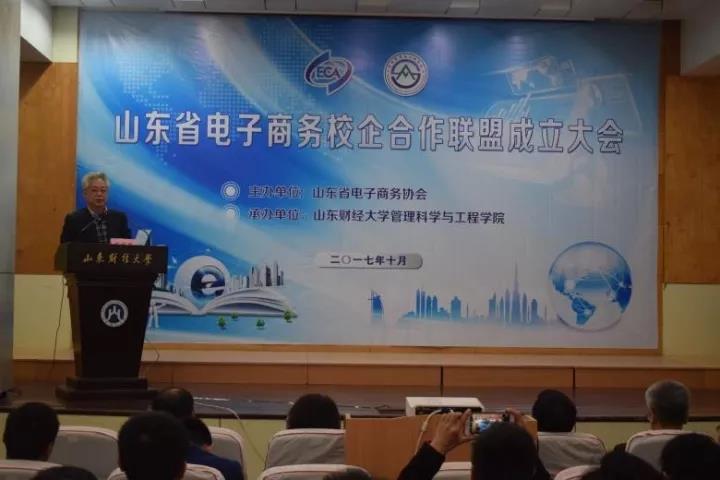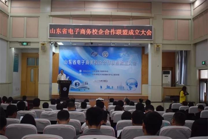 2017年10月26日,山东省电子商务校企合作联盟成立大会在燕山校区召开。副校长胡文波、省经委信息化推进处副处长孟玲、省教育厅科技处副处长曾宪文、学院院长张新、党委书记李军,以及山东大学、山东科技大学、济南大学、聊城大学、山东电子职业技术学院、山东经贸职业学院等30余所高校职业院校的领导和老师们,浪潮集团、开创集团、山东世纪开元、山东景芝、韩都衣舍、颐高电子商务产业园等80余家企业、园区代表与会。会议由山东省电子商务协会秘书长李俭主持。