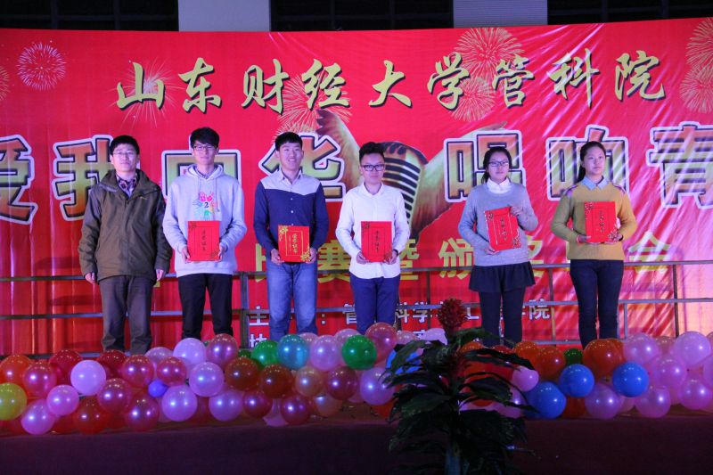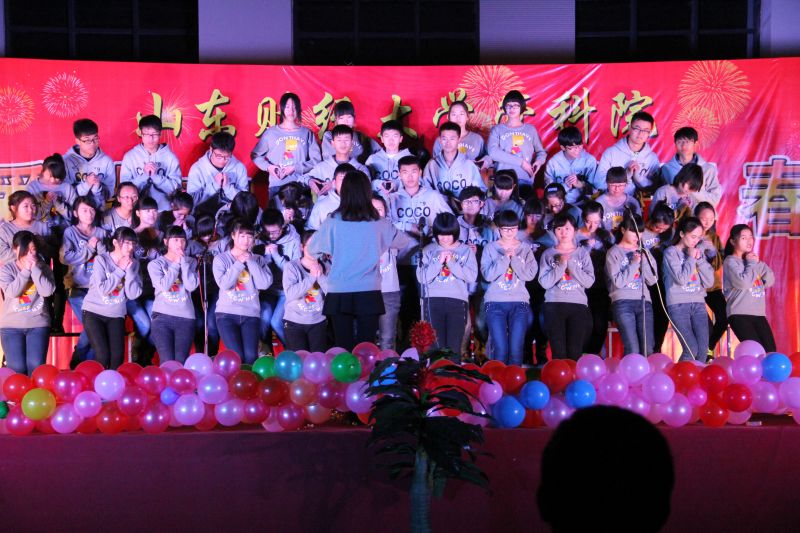 2014年12月8日晚6点30,由我院主办的“爱我中华,唱响青春”合唱比赛暨颁奖典礼在我校明水校区体育馆举行。本次大赛由我院党委副书记徐世星老师、商业银行副总娄璐先生、学工办主任兼团总支书记张贞梅老师、就业办主任兼党总支秘书周广春老师和辅导员何丽、孙智凝老师担任评委。我院2014级全体同学参加了比赛。