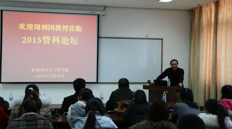 12月30日下午,中央财经大学商学院博士生导师周利国教授应邀做客“2015管科论坛”,做了题为《供应链、供应链管理与供应链金融——供应链管理实践的演进》的学术报告。院长张新,院长助理刘位龙、马建华,物流管理系部分教师,物流工程专业全体硕士生,以及管理科学与工程专业的部分博士、硕士研究生参加报告会。