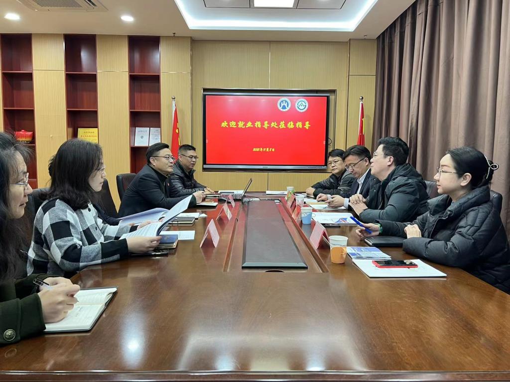 11月8日下午,学校就业指导处处长杨哲,副处长杜丽娜、周广春,科长何峰一行莅临我院交流调研就业工作,学院党委书记李军,院长刘培德,党委副书记朱翠珍,辅导员王桂月、孙智凝、沈健参加座谈。