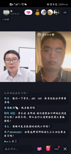 齐青威结合自己的职业经历与在校学习情况,与直播间内各位同学进行了充分交流。同学们在评论区就自己关心的学习和就业等问题积极提问。齐青威和张戈依据这些问题,以点带面,为同学们对专业和未来职业发展答疑解惑。
