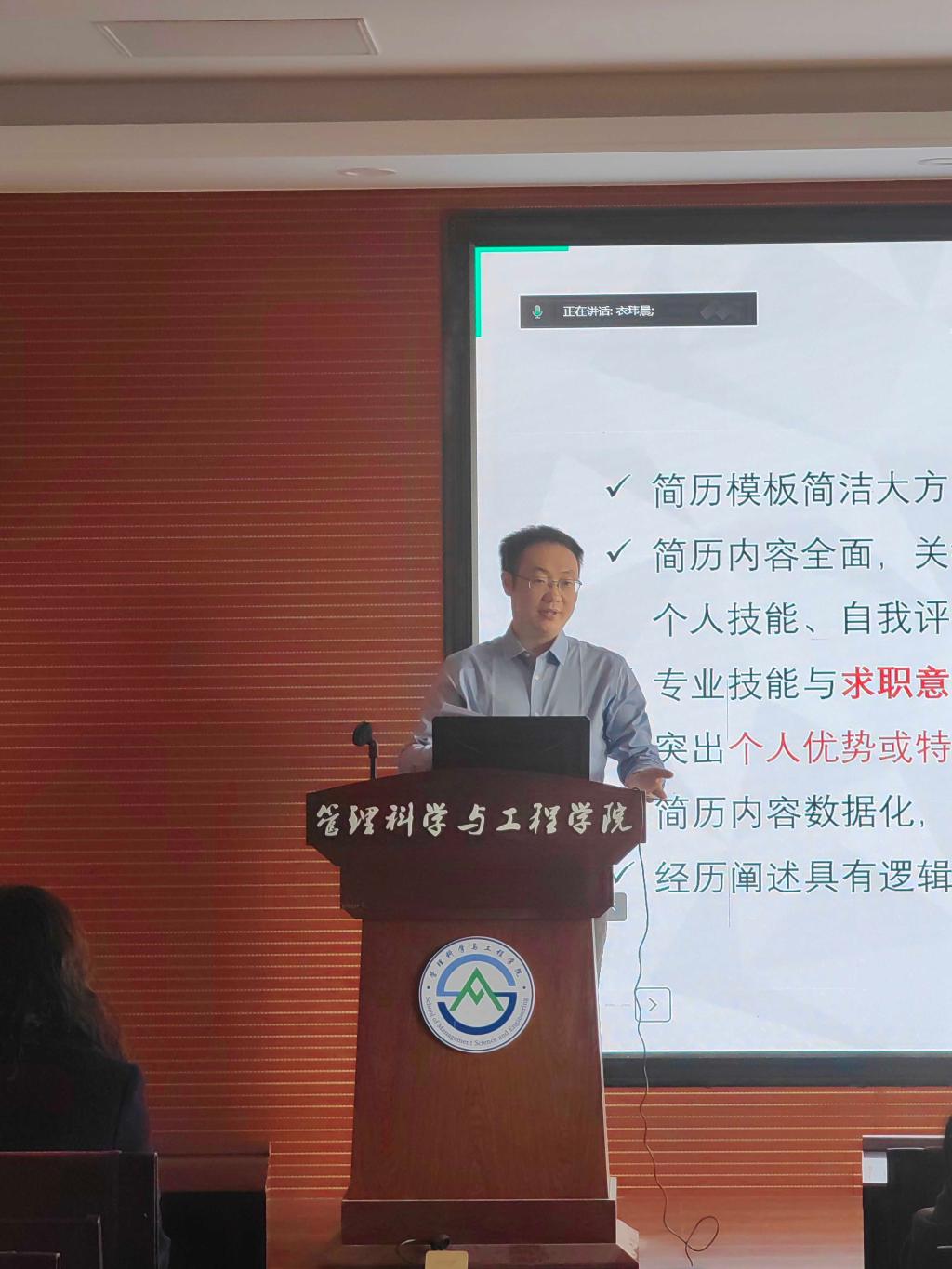 此次讲座充分体现了我院对学生就业和未来发展的重视。讲座通过对如何制作优秀简历的讲解,使同学们明确了目前自身简历存在的问题,李鹏鼓励大家将充实简历和充实大学生活结合起来,为大家未来的大学生活指明了方向。学生们积极踊跃参与互动,收获颇丰。