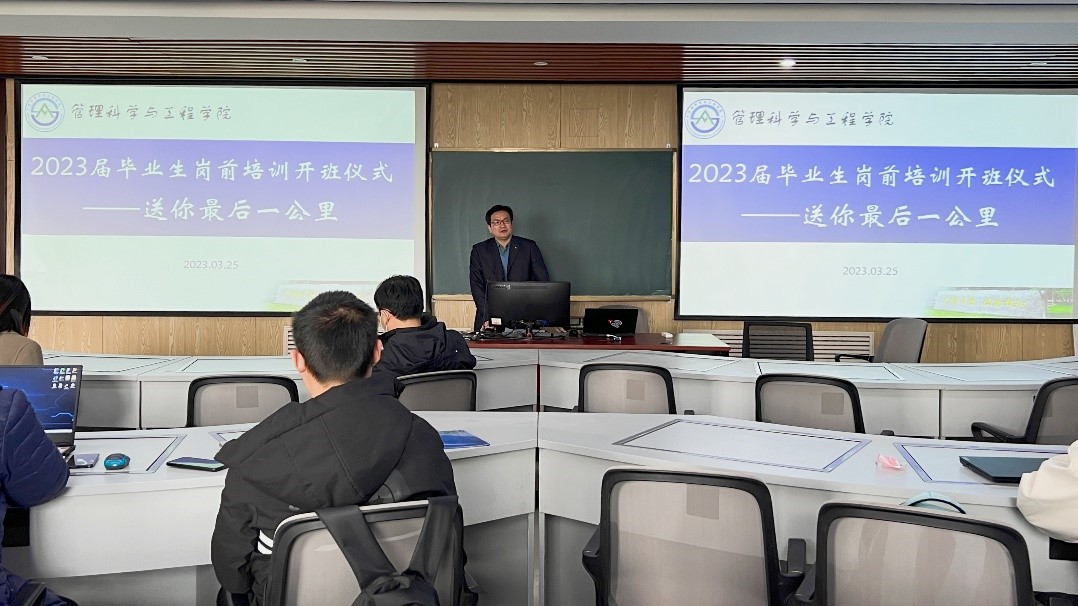 3月25日,我院举行“送你最后一公里”2023届毕业生岗前培训开班仪式。学院院长刘位龙、信息系主任张戈、信息系教师代表、山东金现代领导、教师出席会议,党委组织员兼19级辅导员冯婧主持会议。