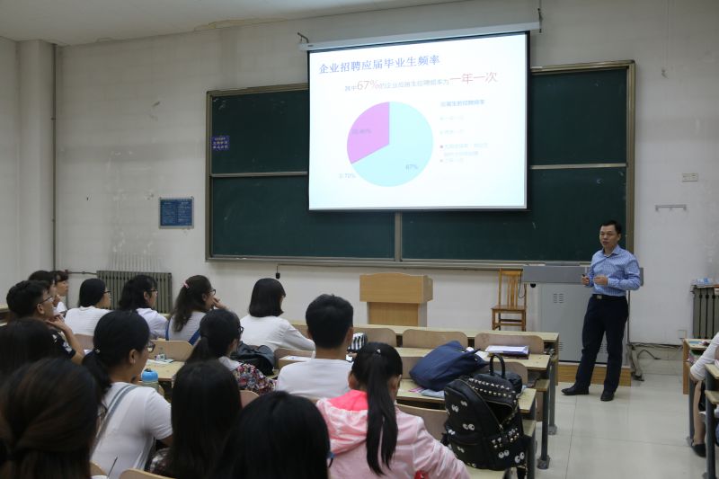 会议伊始,李攀峰首先介绍了近几年的就业环境。李总根据同学们的理解介绍就业形势概况,希望同学从“遵从喜好,遵从专业,从事公司主流岗位”三个方面选择职业。活动中李总重点介绍面试流程以及面试过程中容易出现的问题,与同学们互动,现场进行模拟招聘。这对学生如何实现成功应聘有很大帮助。最后,他围绕“如何完成从学生到员工的转变”这个话题,提出建议并希望同学们保持乐观积极的态度,提升综合素质与能力。