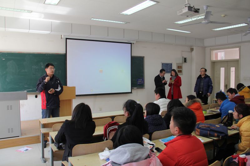 王华杰就学院毕业生的就业情况做了简单介绍,指出信息管理与信息系统专业就业的巨大潜力。随后,王华杰老师对IT行业内各技术工种的热度及成材期进行了详细的介绍,鼓励同学们运用正确的方法学好技术,热情地为同学们提供实习的机会,还为同学们搭建了可以与老师及往届毕业生交流的平台,对同学们寄予了无比的期望。