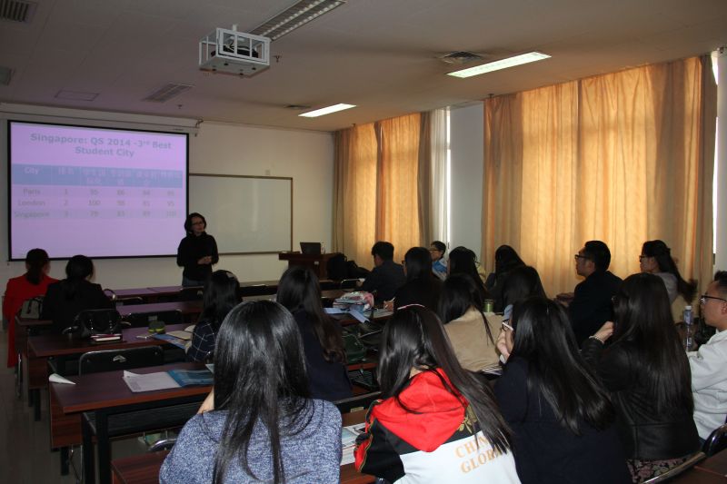 3月16日下午,“新加坡国立大学系统科学院”宣讲会在逸夫楼610举行。新加坡国立大学系统科学院招生处处长王孟萱女士担任主讲,新加坡政府奖学金招生代表、新加坡万和教育集团穆丽霞女士出席了本次会议。宣讲会由周广春老师主持。
