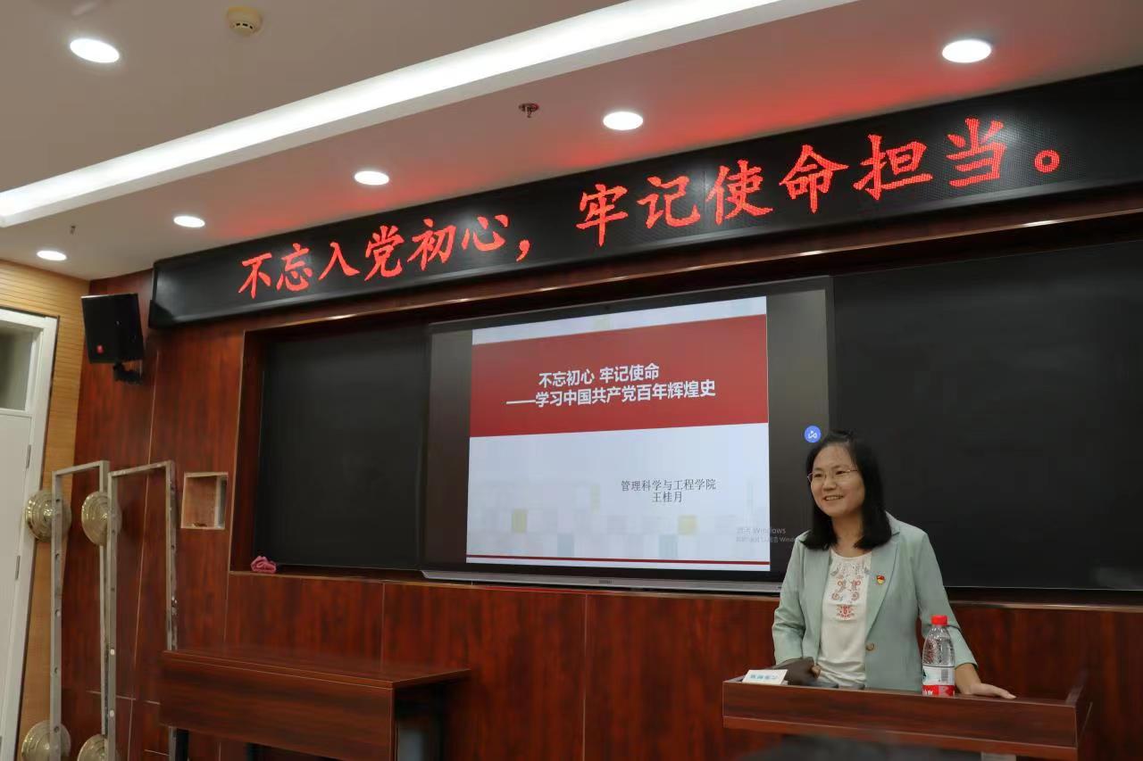 王桂月在课上强调要牢记习近平在党史学习教育动员时指出的“学史明理,学史增信,学史崇德,学史力行”,要不忘初心牢记使命,我们党的一百年是矢志践行初心使命的一百年,是筚路蓝缕奠基立业的一百年,是创造辉煌开辟未来的一百年。她认为,中国共产党在中国特色社会主义新时代团结带领中国人民迎来了中华民族从站起来、富起来到强起来的伟大飞跃,迎来实现中华民族伟大复兴的光明前景。历史发展到今天,强国一代的青年们要把民族复兴的接力棒传承下去,实现中国梦。