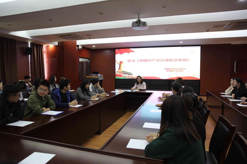 5月10日,学生第三党支部集体学习《中国共产党支部工作条例(试行)》。