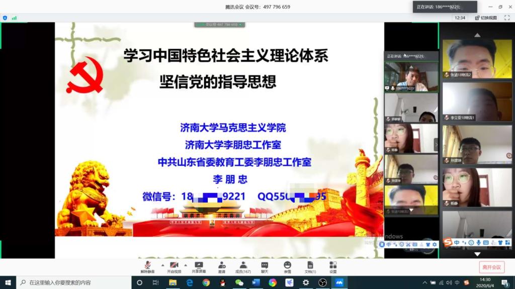 疫情的特殊形势下,我院2020年春季入党积极分子培训班也转战线上,6月4日下午14点30分,李朋忠教授的开堂第一讲《学习中国特色社会主义理论体系坚持党的指导思想》拉开了本学期培训的序幕。