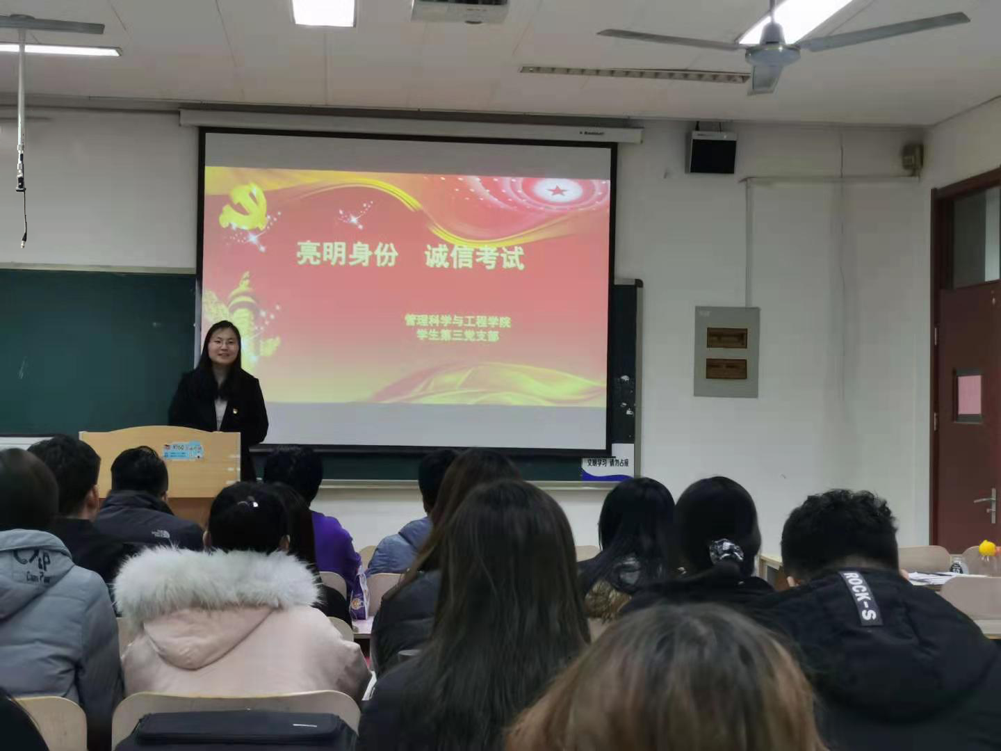 在2019—2020学年第一学期期末考试来临之际,管理科学与工程学院学生第三党支部召开了“亮明身份 诚信考试”动员会。