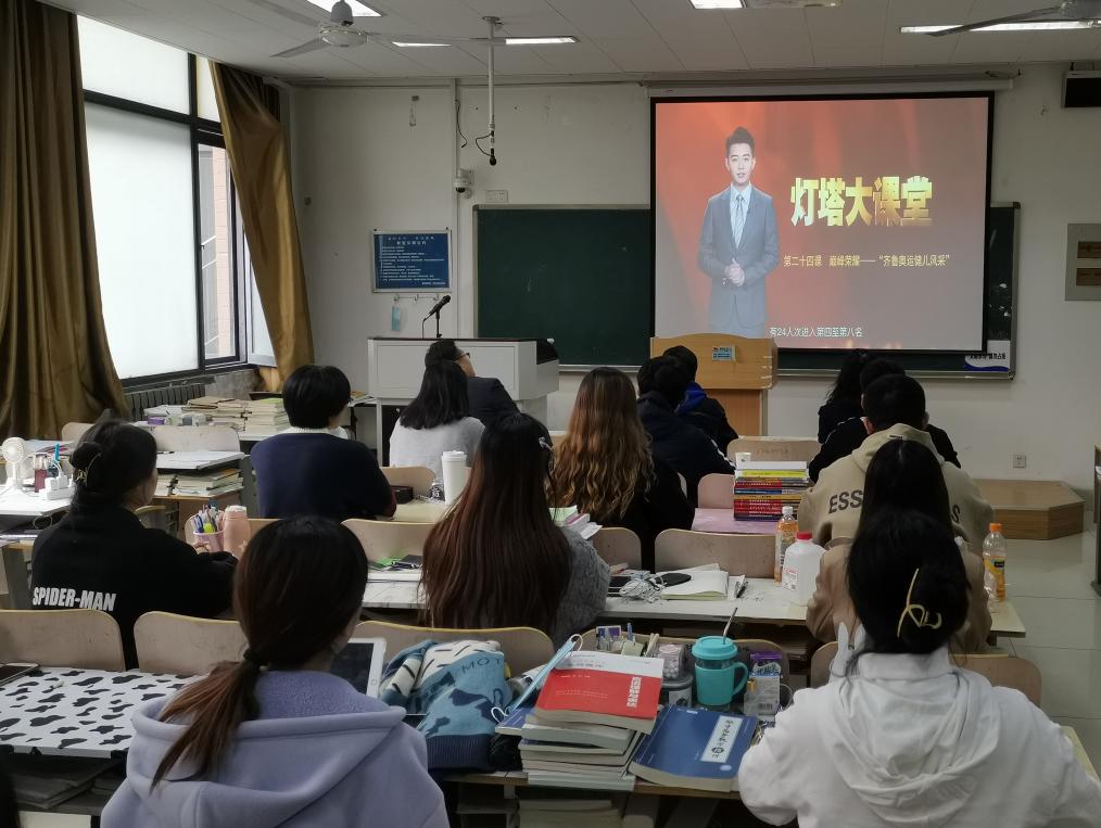 为进一步加强党史学习,10月21日,学生第三党支部在逸夫楼506组织支部党员们一起学习了“灯塔大课堂”第二十四课《巅峰荣耀——“齐鲁奥运健儿风采”》,全体党员参加。