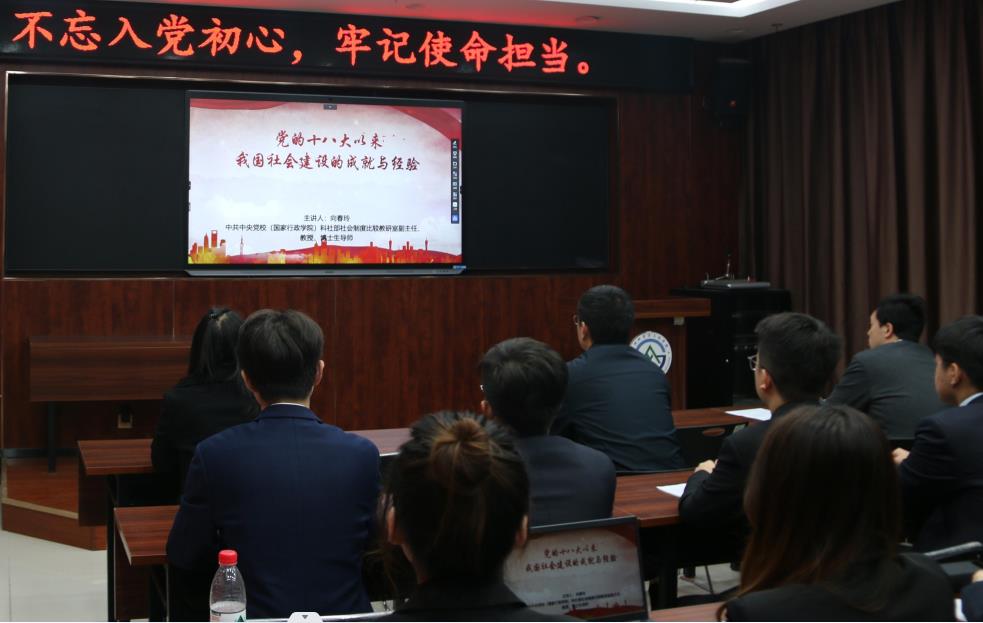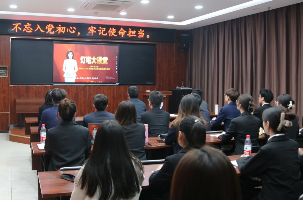 10月14日,学生第三党支部组织本支部党员们学习“灯塔大课堂”第三十三课《党的十八大以来我国社会建设的成就与经验》,全体党员参加。
