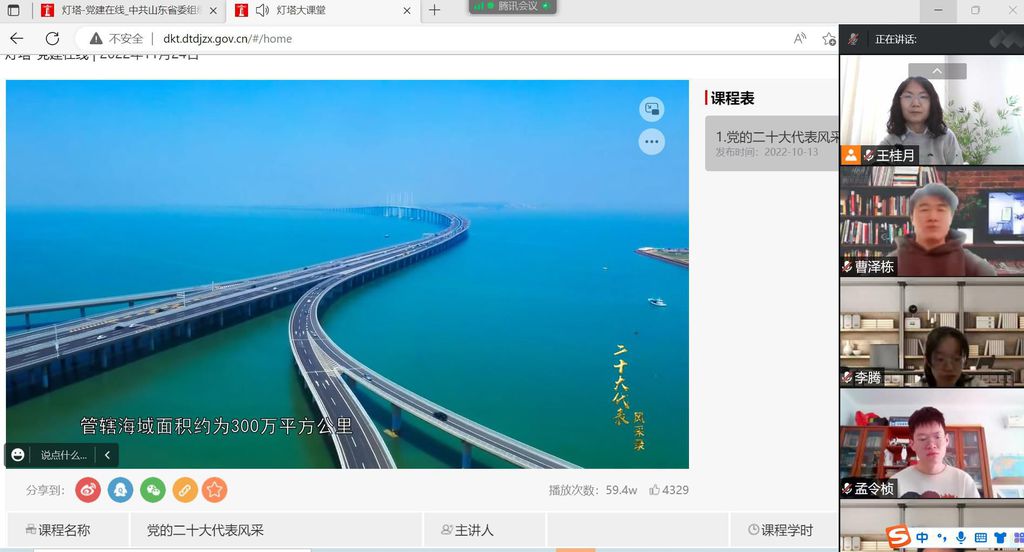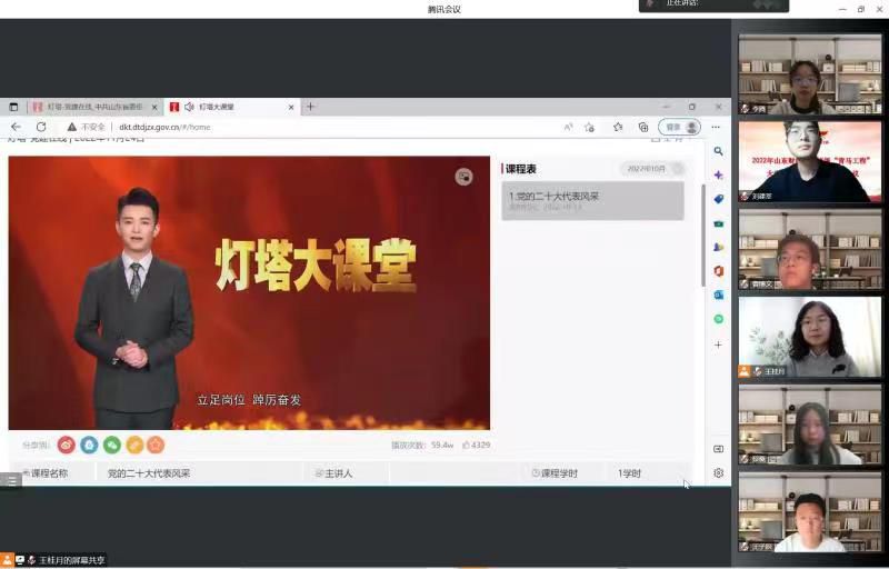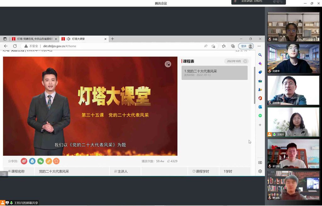 11月24日,学生第三党支部组织本支部党员们学习“灯塔大课堂”第三十五课《党的二十大代表风采》,活动采用线上进行的方式,全体党员参加。