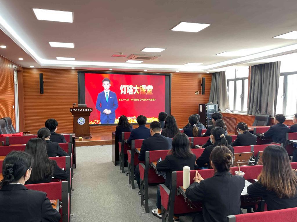 3月9日,学生第三党支部组织党员学习学习“灯塔大课堂”第三十八课:学习贯彻《中国共产党章程》,全体党员参加。