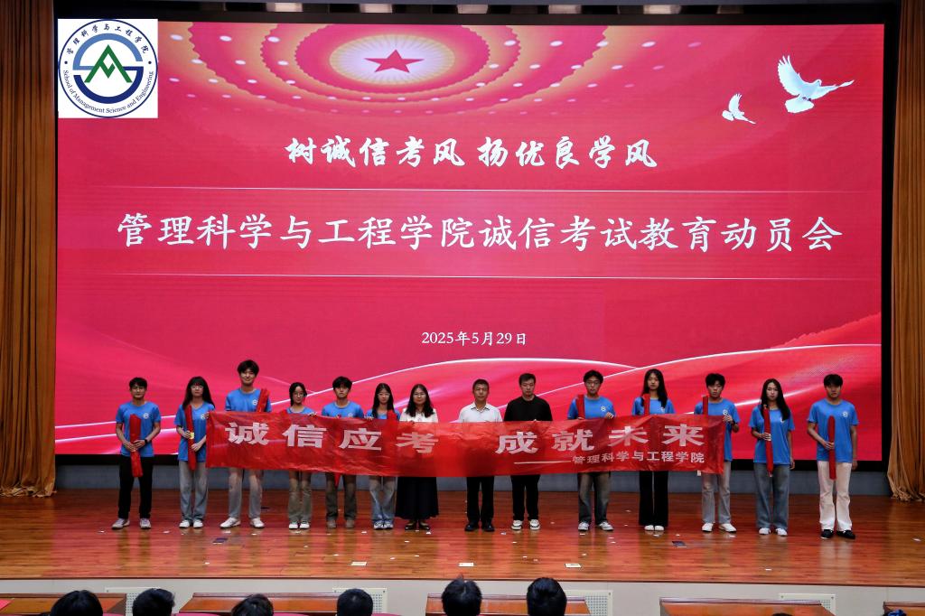 动员会上还为各个班级发放了诚信考试的条幅,印有醒目诚信口号的条幅被依次分发到各个班级代表手中。这些条幅将在期末考试中悬挂在各个考场,时刻提醒同学们牢记誓言,在考场上交出一份无愧于心的答卷。