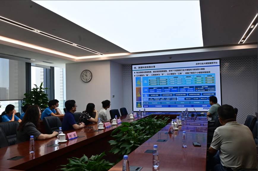 展厅参观结束后,团队进入会议室参加“浪潮科技实践分享”专题交流会。会上,浪潮研究院专家围绕“焱宇行业大模型服务平台”作系统介绍,重点讲解了平台以“大模型为脑智能体为手小模型为工具”的整体架构,致力于打造可训练、可部署、可交互的完整智能生态。平台已推出7个行业轻量级大模型、5类典型场景模型,并形成数百个智能体组件,广泛赋能政务、医疗、城市治理等关键领域。在此基础上,浪潮重点展示了其在智能问答、数据治理、城市管理等场景中的前沿实践,包括面向政务的智能问数平台、智能问答系统、智能运维模块,以及目录自动生成、供需智能匹配和数据安全分级机制等一体化数据中台技术能力。同时,团队还了解到浪潮构建了城市运行管理中枢、智能热线服务、社会治安风险预警平台和应急指挥调度系统,实现了城市治理从“事后响应”向“主动预警”的范式跃迁。此外,浪潮在科研层面亦成果显著,近三年牵头或参与国家、省部级重大项目6项,涵盖智慧城市、AI基础设施、政务模型平台等方向,展现出强大的科研实力与战略响应能力。整场报告逻辑清晰、案例翔实,既展现了浪潮在人工智能领域的领先优势,也为山财学子提供了大模型场景应用的直观路径与理论基础。