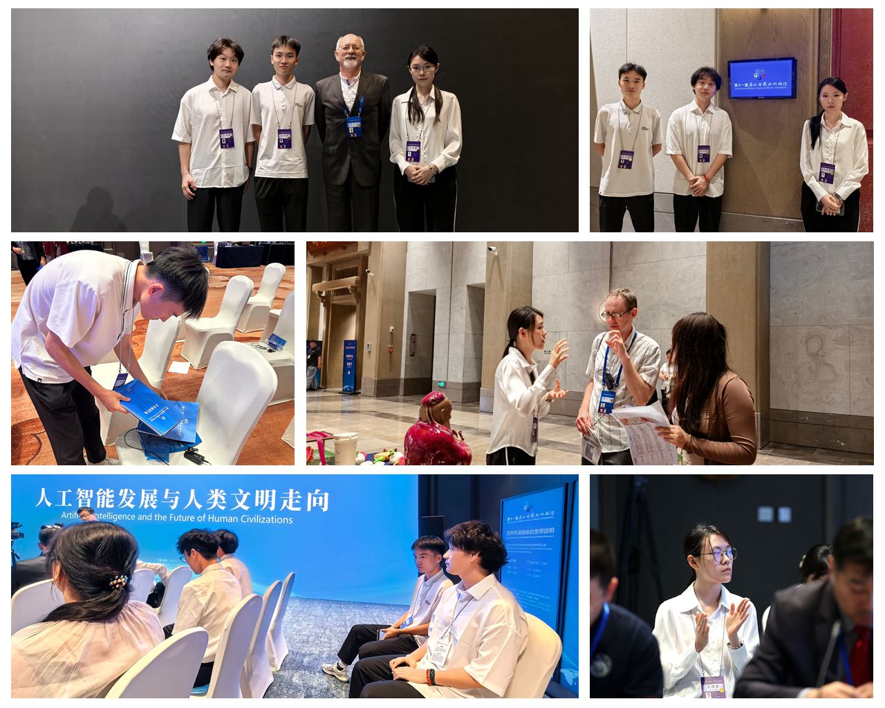调研期间,团队成员还积极参与论坛志愿服务:作为接待服务组成员,在开、闭幕式期间参与《会务手册》的中英文排版与校对工作,协助布置会场、引导嘉宾就座,并为嘉宾提供翻译服务。