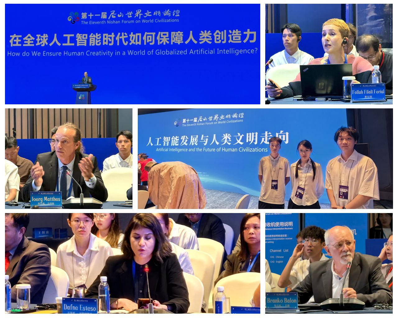 在人工智能分论坛,来自安徽大学、山东大学、西北大学、济南大学、对外经贸大学,以及克罗地亚、阿尔及利亚、阿根廷、阿联酋、奥地利、波兰、韩国、意大利、柬埔寨的14 位国内外专家,围绕 “人工智能发展与人类文明走向” 及相关话题发表见解,提出 “人工智能技术进步需以人文精神为锚” 的观点,一致认为人工智能是把双刃剑:它在带来诸多便利的同时,也促使人们重新审视诸多新问题。团队成员在会后采访相关专家,探讨人工智能时代下,文明如何借助技术创造价值、丰盈生活。