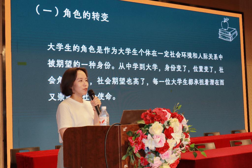 9月2日中午,学院邀请校心理健康教育与研究中心专职教师、国家二级心理咨询师宋晓婉,在章丘校区大学生活动中心,为我院2025级新生开展题为“大学生活从心开始”的心理健康教育讲座。讲座由院学生(就业)工作办公室主任王桂月主持。