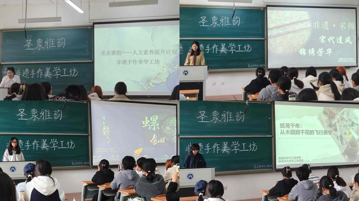 为进一步提升学生人文素养,以美育浸润学生,提升学生审美感知和创意实践素养,营造向真向善向美向上的校园文化氛围。2025年10月25日,学院“圣泉雅韵”系列活动之非遗手作美学工坊在章丘校区顺利举办。本次活动精心设置了螺钿、宋锦和纸鸢等三种非遗项目体验区,让同学们切身感受非遗文化魅力。