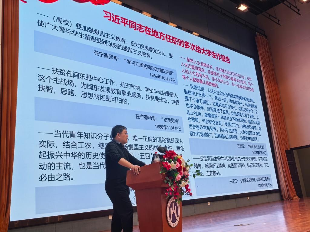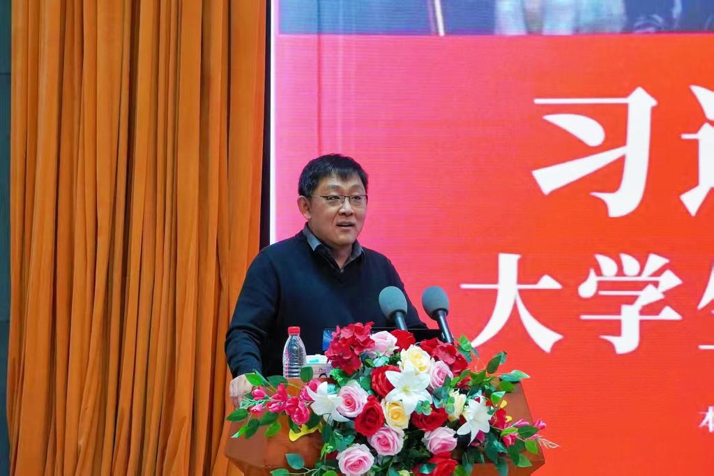 在讲座中,王彤凭借多年深耕思政教育领域的丰富阅历与扎实深厚的理论素养,对《习近平与大学生朋友们》一书作出了兼具思想深度与情感温度的精彩剖析。他结合书中习近平总书记与大学生交往时的真诚态度、交流中的深刻见解和交心时的真挚情怀,生动还原了一系列鲜活可感的互动事例,引导学生重温那些饱含期许的对话场景,直观感受领袖的思想魅力与人格力量,进而明确青年成长的正确方向。王彤强调,这部著作是习近平总书记站在青年成长成才角度,亲自讲授的一堂堂生动思政课与深刻人生课,其中蕴含的育人智慧与价值导向,对当代大学生树立正确的世界观、人生观、价值观具有不可替代的重要意义。他勉励同学们静心研读、深入体悟,在字里行间感受总书记对青年一代的深切关怀与殷切期望,主动将个人理想融入国家发展大局,在勤学苦练中增长才干,在担当作为中锤炼品格,努力成长为有理想、敢担当、能吃苦、肯奋斗的新时代好青年,不负时代,不负韶华。