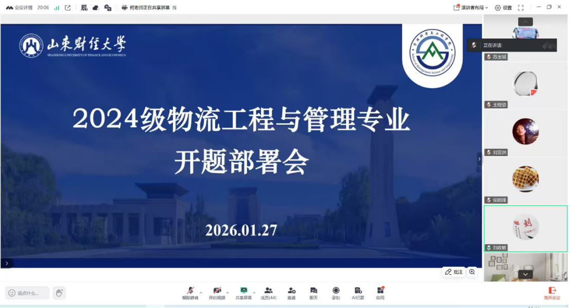 1月27日晚,我院以腾讯会议形式召开2024级物流工程与管理专业硕士研究生开题部署会,旨在明确学位论文全流程关键节点与学术规范,为后续论文工作筑牢基础。会议由研究生辅导员何丽老师主持。