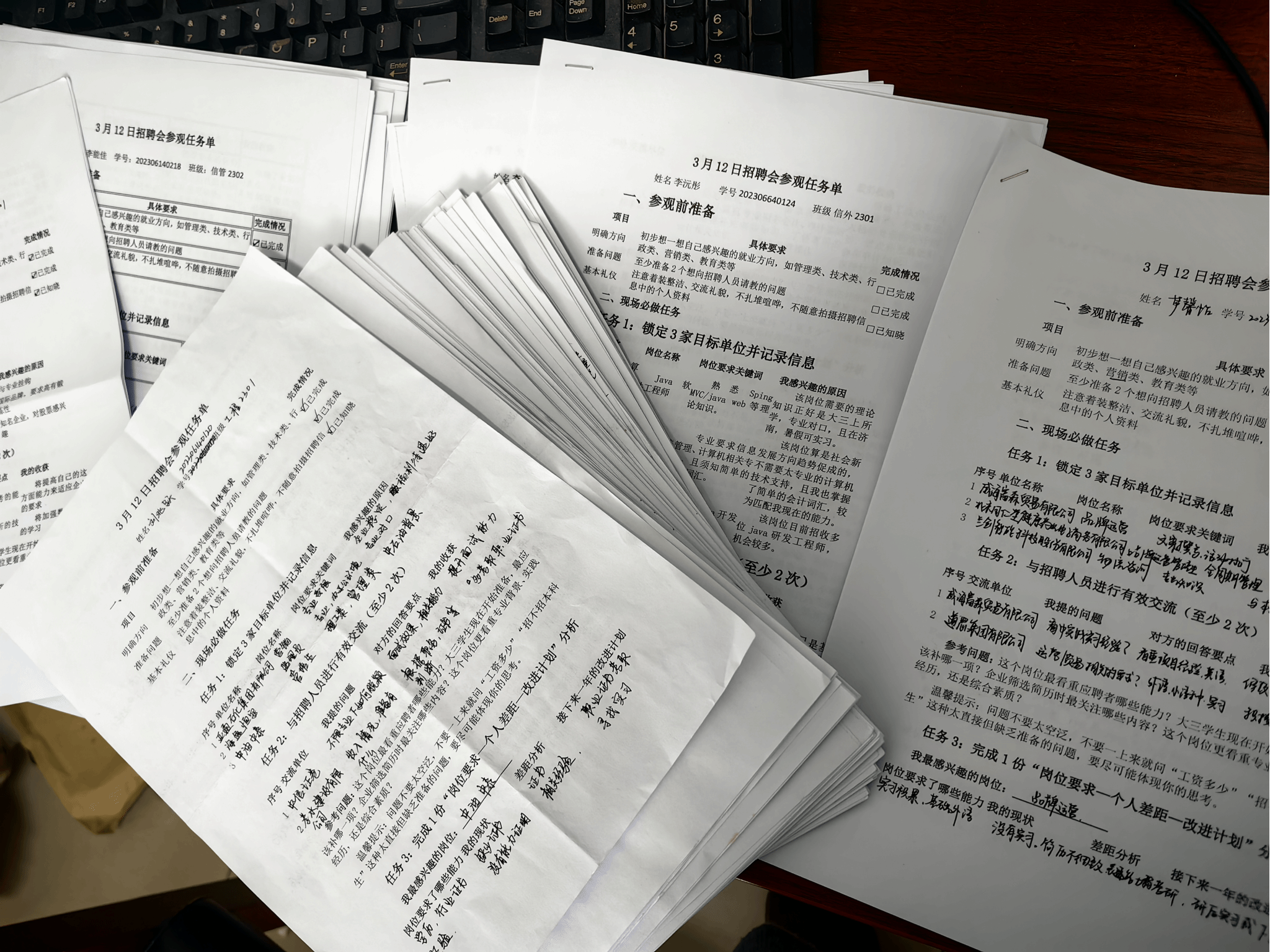 图为大三学生就业招聘会任务清单