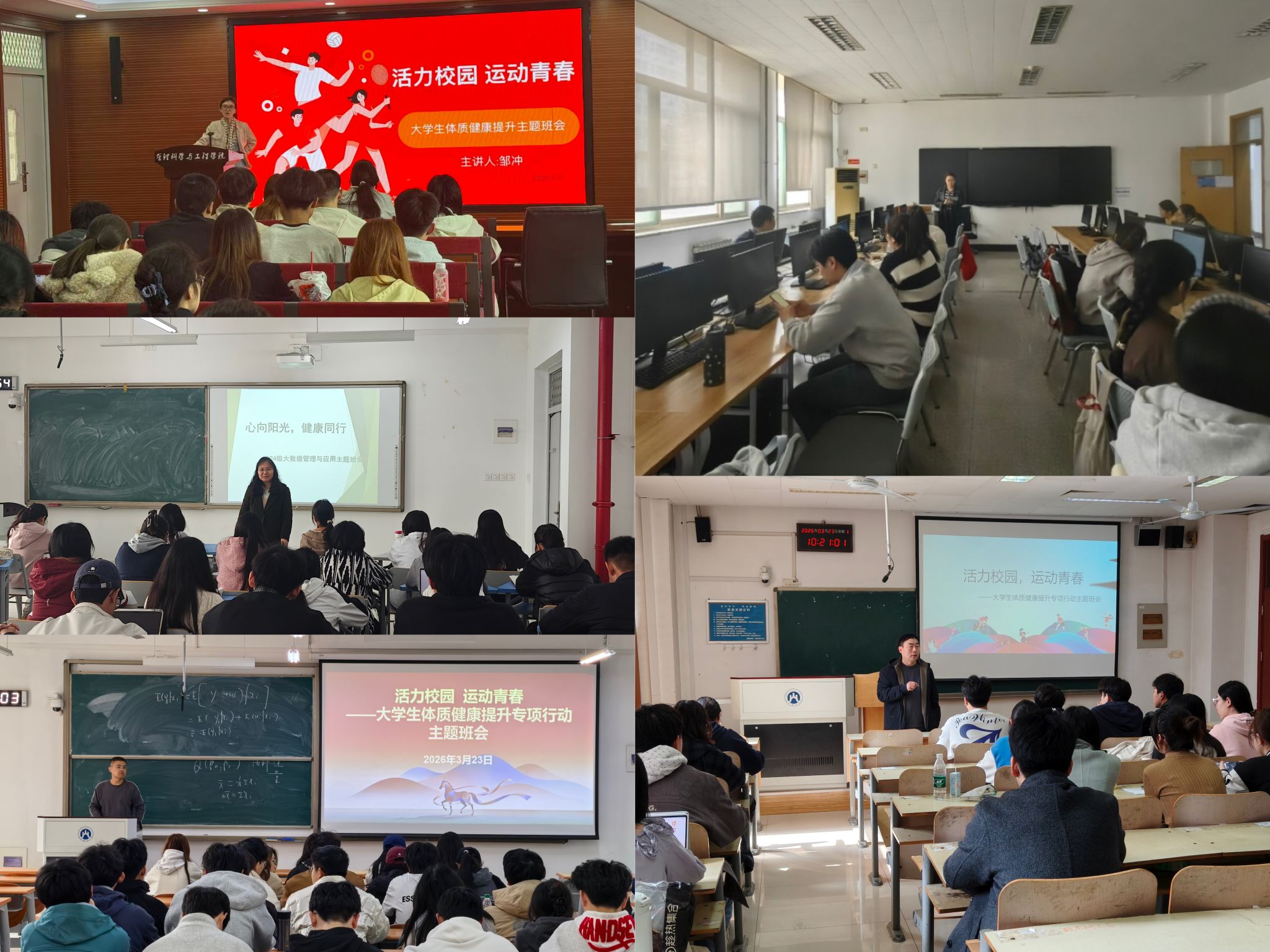 为深入贯彻教育部《关于实施大学生体质提升专项行动的通知》精神,落实“健康第一”教育理念,推动学生体质健康水平稳步提升,学院大一到大三年级辅导员于2026年3月19日至3月30日,组织各班级开展“活力校园,运动青春”大学生体质健康提升专项行动主题班会,实现班级、学生全覆盖。