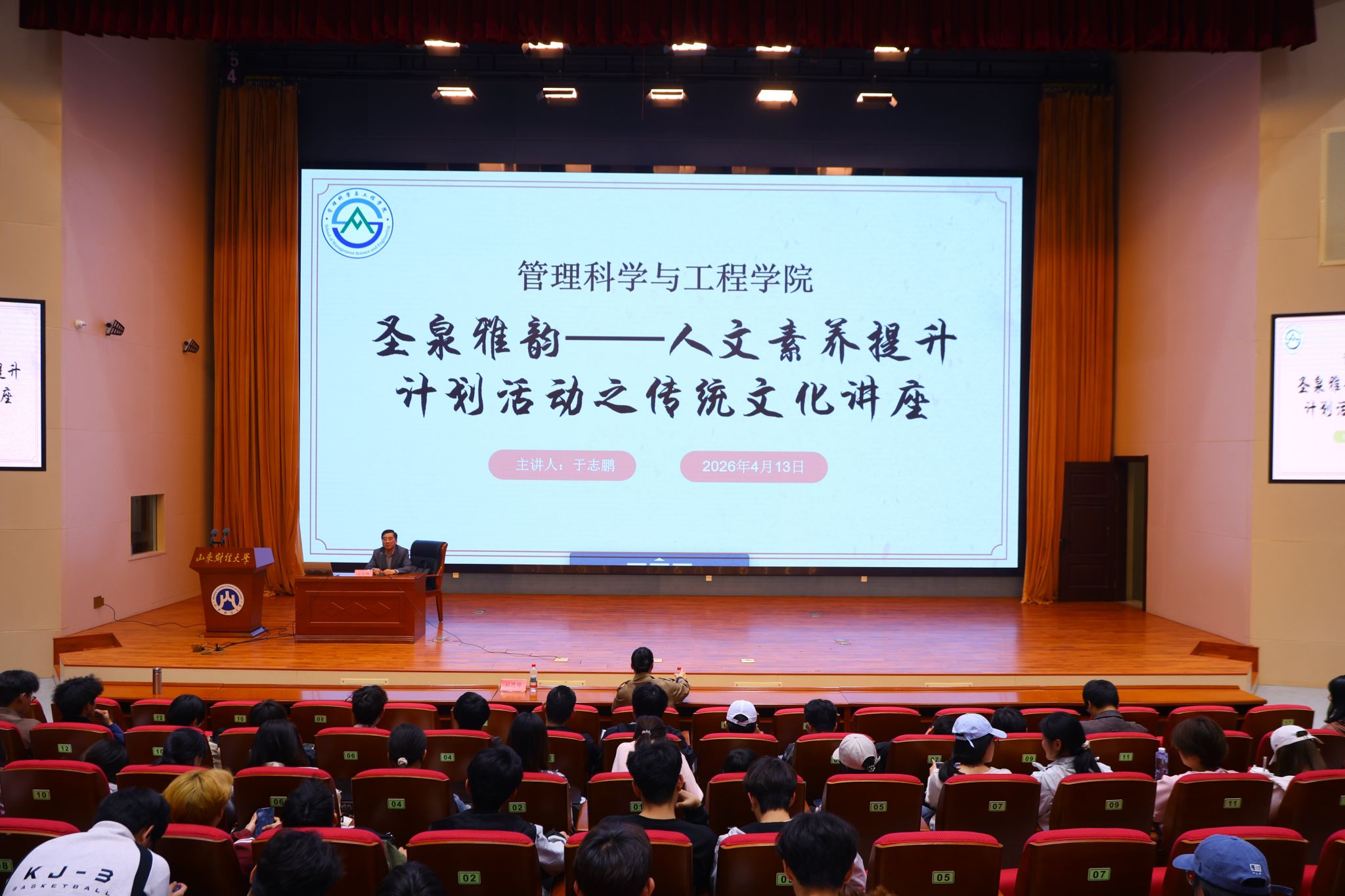 为提升我院学子人文素养,增进对中华传统文化的理解与认知,4月13日晚,“晋鲁相望:山西人眼中的齐鲁文化”主题讲座在章丘校区图书馆报告厅顺利举行。本次讲座由山东财经大学文学与新闻传播学院于志鹏副教授主讲,学院辅导员张智璇老师主持,学院党委副书记刘思锋出席活动,2025级全体学生及2024级部分同学共四百余人参加。