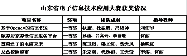 本次大赛是第十届山东省大学生科技节重要赛事之一。大赛自启动以来,历时六个月,参赛选手涵盖了来自全省100多所高校,2600多个代表队参赛。参赛作品涵盖电子产品设计、电子商务、软件开发、飞行器、数字艺术等五个领域。备赛期间指导老师和团队成员通过认真学习、查阅资料不断修改并完善方案,获得评委的高度认可,获得一等奖两项,二等奖和三等奖各一项。