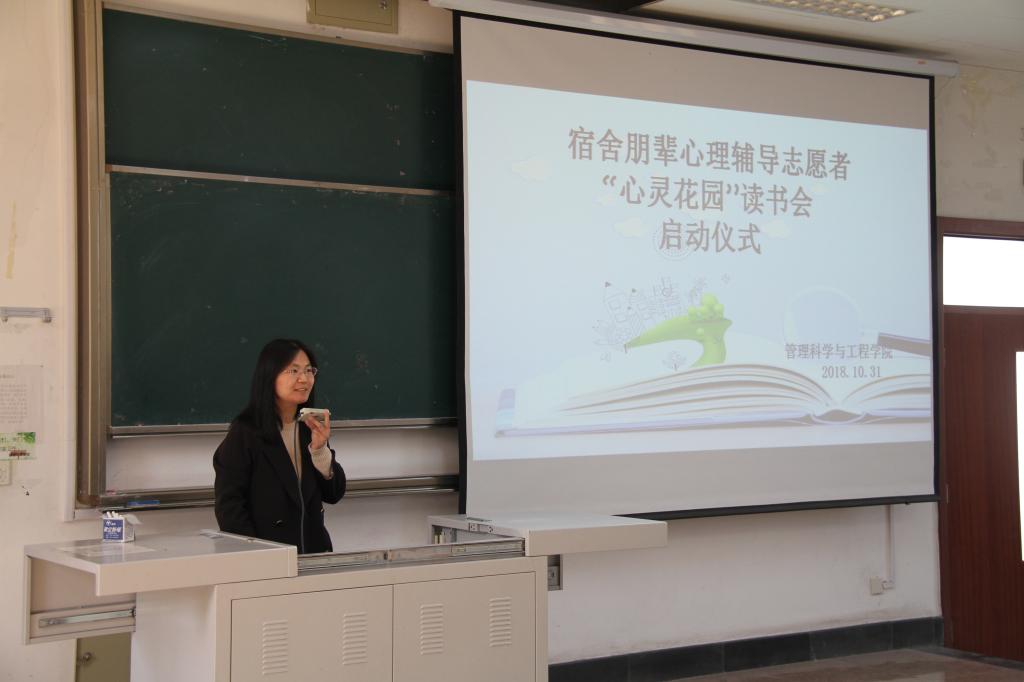 10月31日下午,根据学校相关文件的要求,管理科学与工程学院在明水校区4201教室举办了宿舍朋辈心理辅导志愿者“心灵花园读书会”启动仪式。学院老师、16级和17级全体心理委员及宿舍朋辈心理辅导志愿者100余人参加。