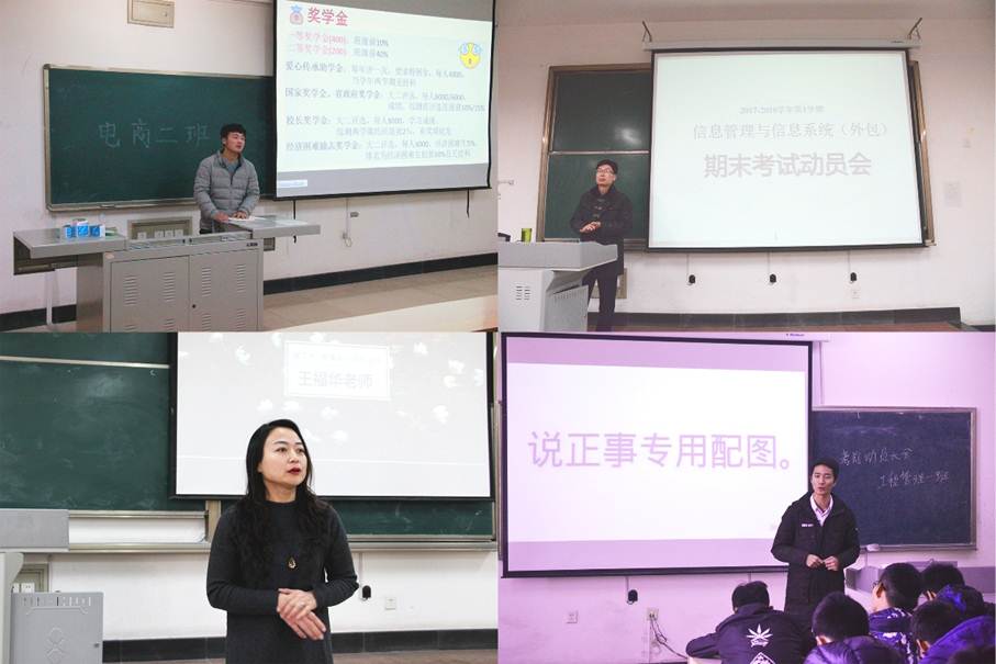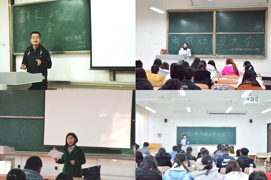 在2017-2018学年第一学期期末考试来临之际,学院明水校区组织各班召开考前动员大会,16级辅导员周广春,17级辅导员何丽、李涛,各班兼职班主任及明水校区学生参加会议。