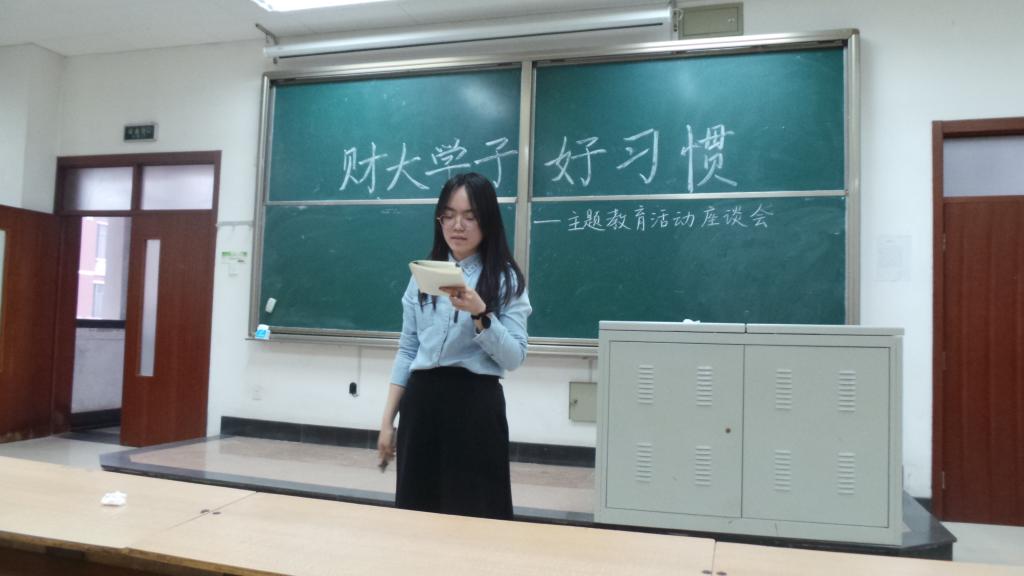 为深入贯彻习近平总书记在全国高校思想政治工作会议上的重要讲话,全面提高学生综合素质,5月8日,我院“财大学子好习惯”主题教育活动座谈会于明水3201教室成功举办。会议由秘书处副部长孙莹主持,15、16级全体班团及宣传委员参与此次座谈会。