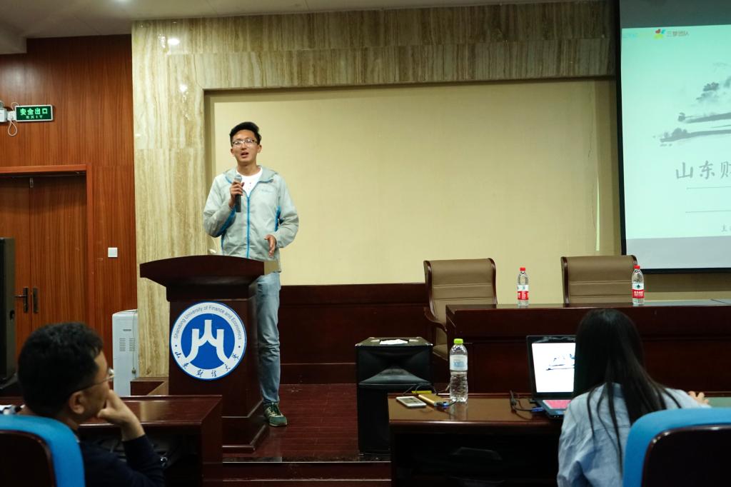 4月20日下午,由我院组建的山东财经大学优秀社会实践团队“三梦”团队受统计学院党委副书记赵世民的邀请,在圣井校区B5-101报告厅开展了主题为“三梦精神”的汇报分享会。现任三梦团队队长魏天和副队张琳作为团队优秀成员代表为参加此次分享会的统计学院师生带来了一场精彩生动的分享报告。