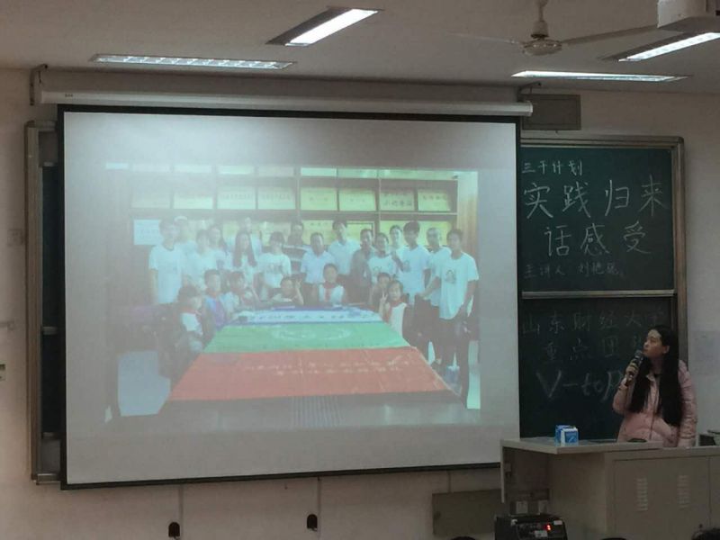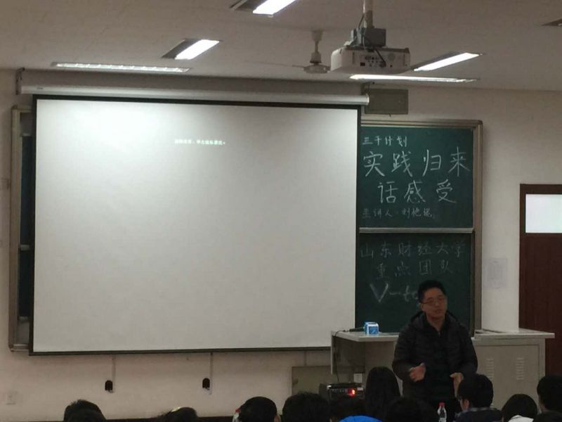 11月24日下午两点半,三千计划“实践归来话感受”讲座于明水校区3201教室召开,我院优秀实践团队V-TOP队伍的指导老师樊庆臣出席了此次讲座,V-top团队队长刘艳妮及V-TOP部分成员参与讲座,管科院学生会部成员及各班代表参与并聆听了本次讲座。
