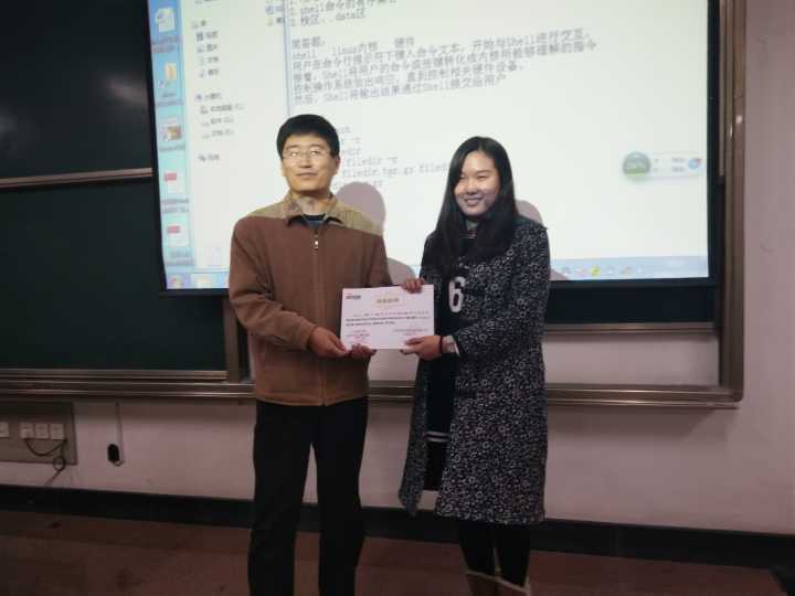 11月15日下午六点,我院学生IT能力提升计划之LinuxC实训营结业典礼于明水校区3502教室举行。本次实训营由我院与校友公司合作主办,给同学们免费做的一个技能提升,对计算机相关专业的同学大有益处。我院党委副书记徐世星、授课老师李彩云和我院校友李鹏出席了本次典礼,孙安琪老师主持本次结业典礼。